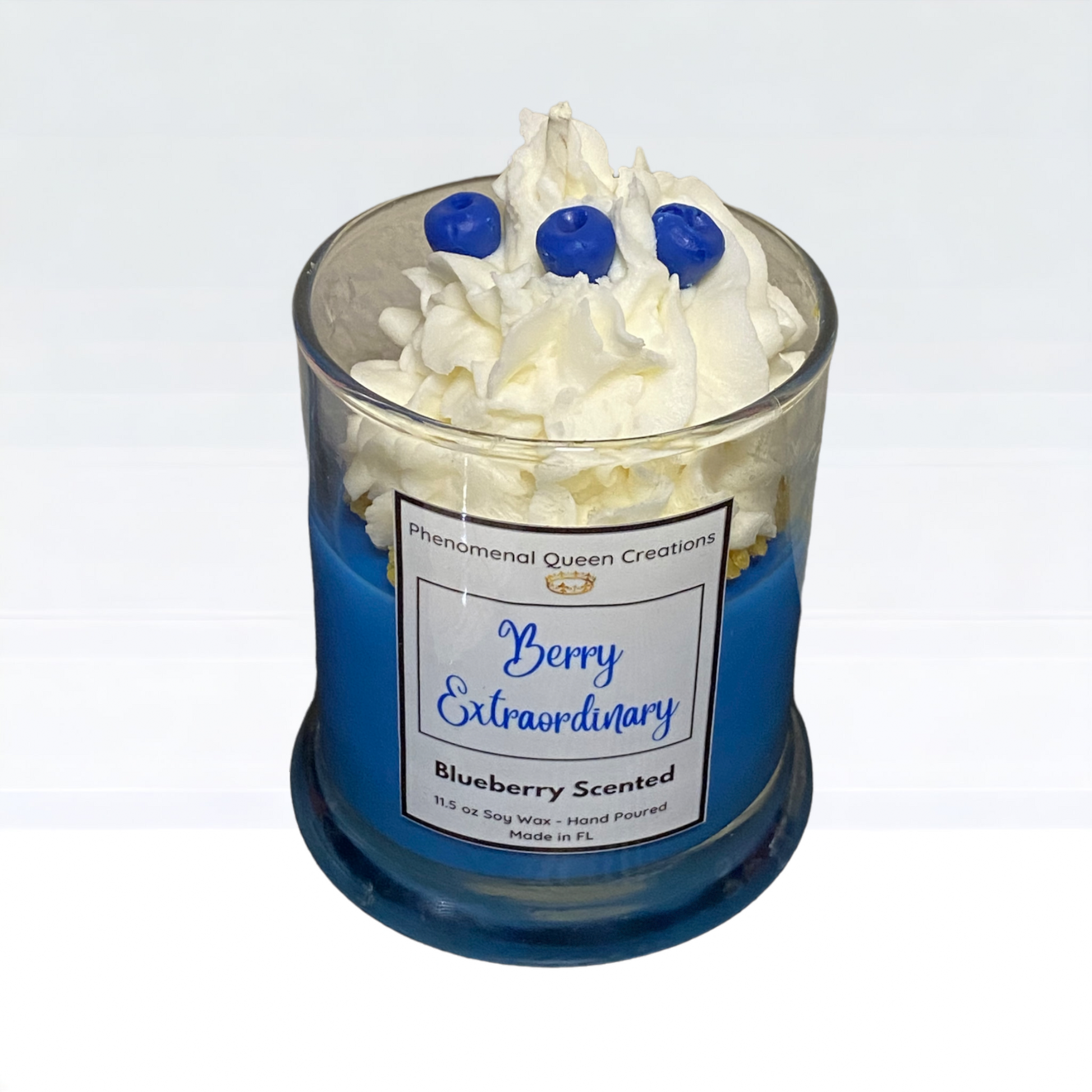 Berry Extraordinary has the fruity and delicious aroma of blueberries. Indulge in the extraordinary allure of blueberries without leaving your space, and let this candle infuse your environment with the irresistible charm of these little blue wonders.