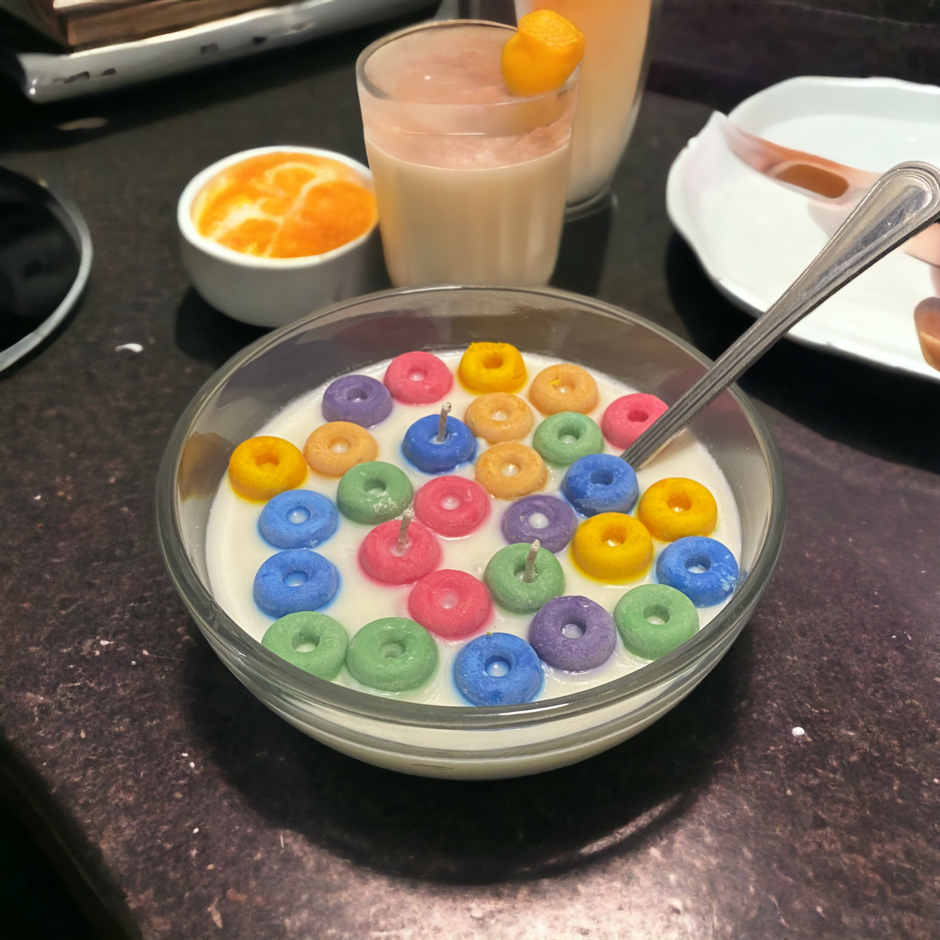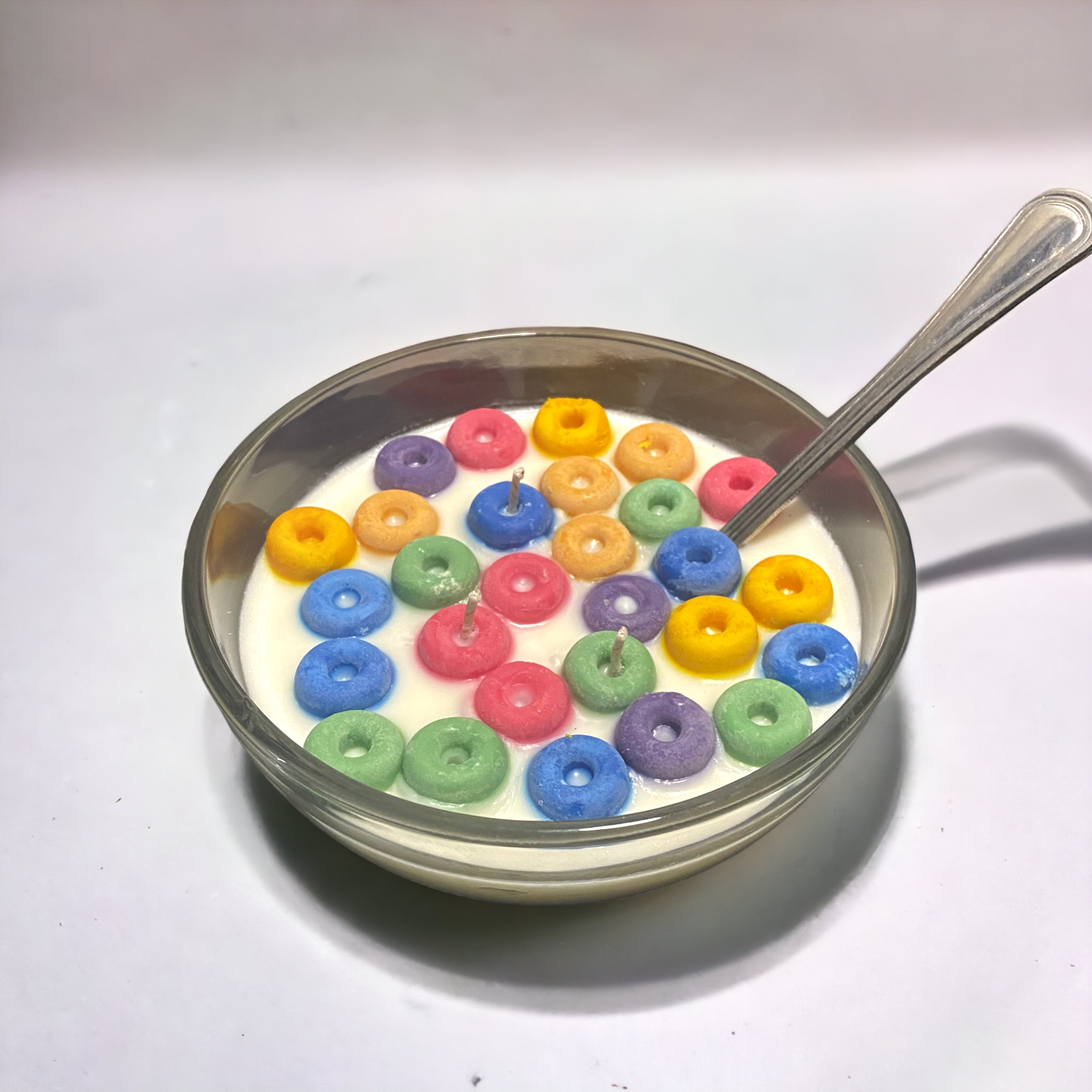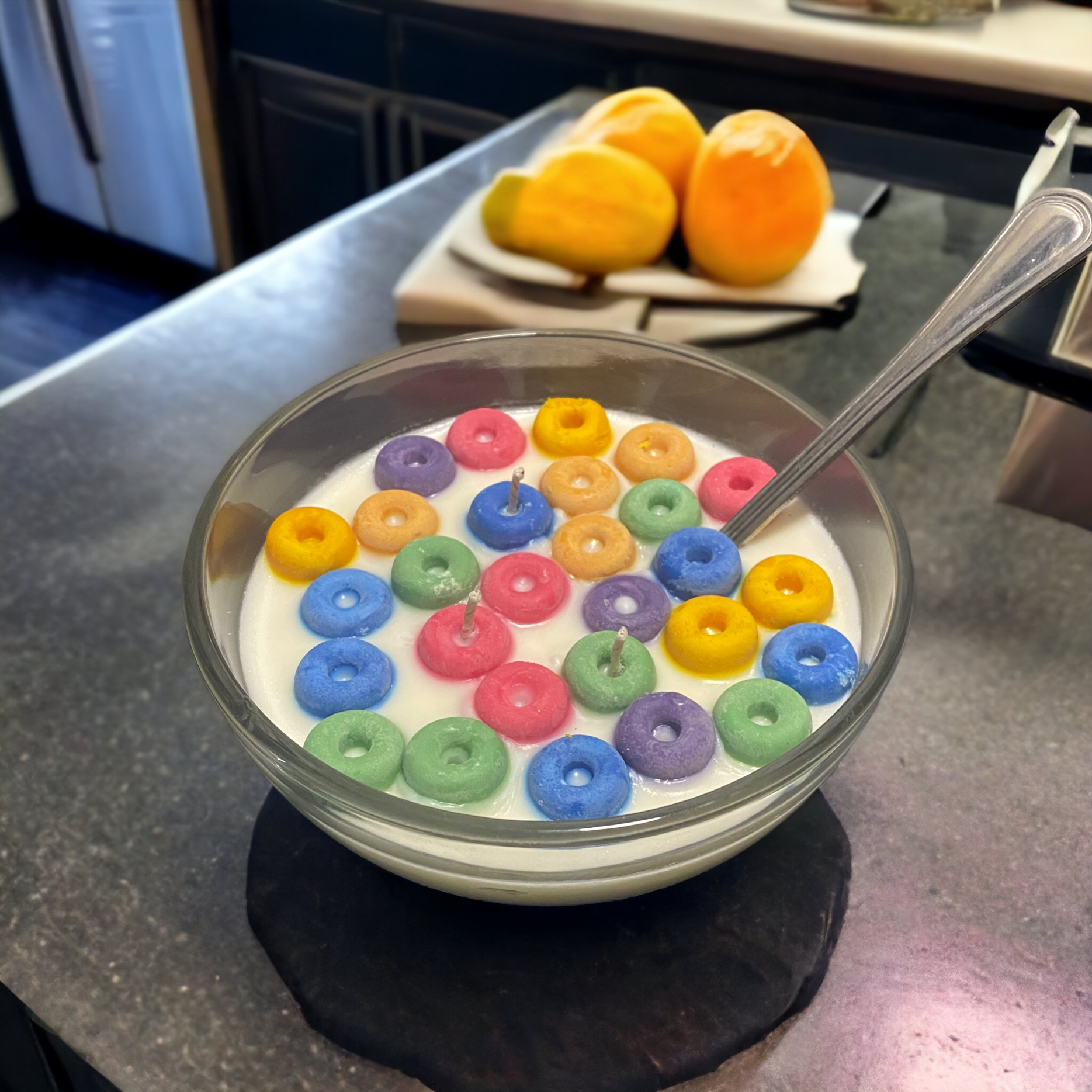 Our Berry Loop Cereal Candle is a 7.5 oz. sweet, delicious smelling candle the looks just like a bowl of cereal.